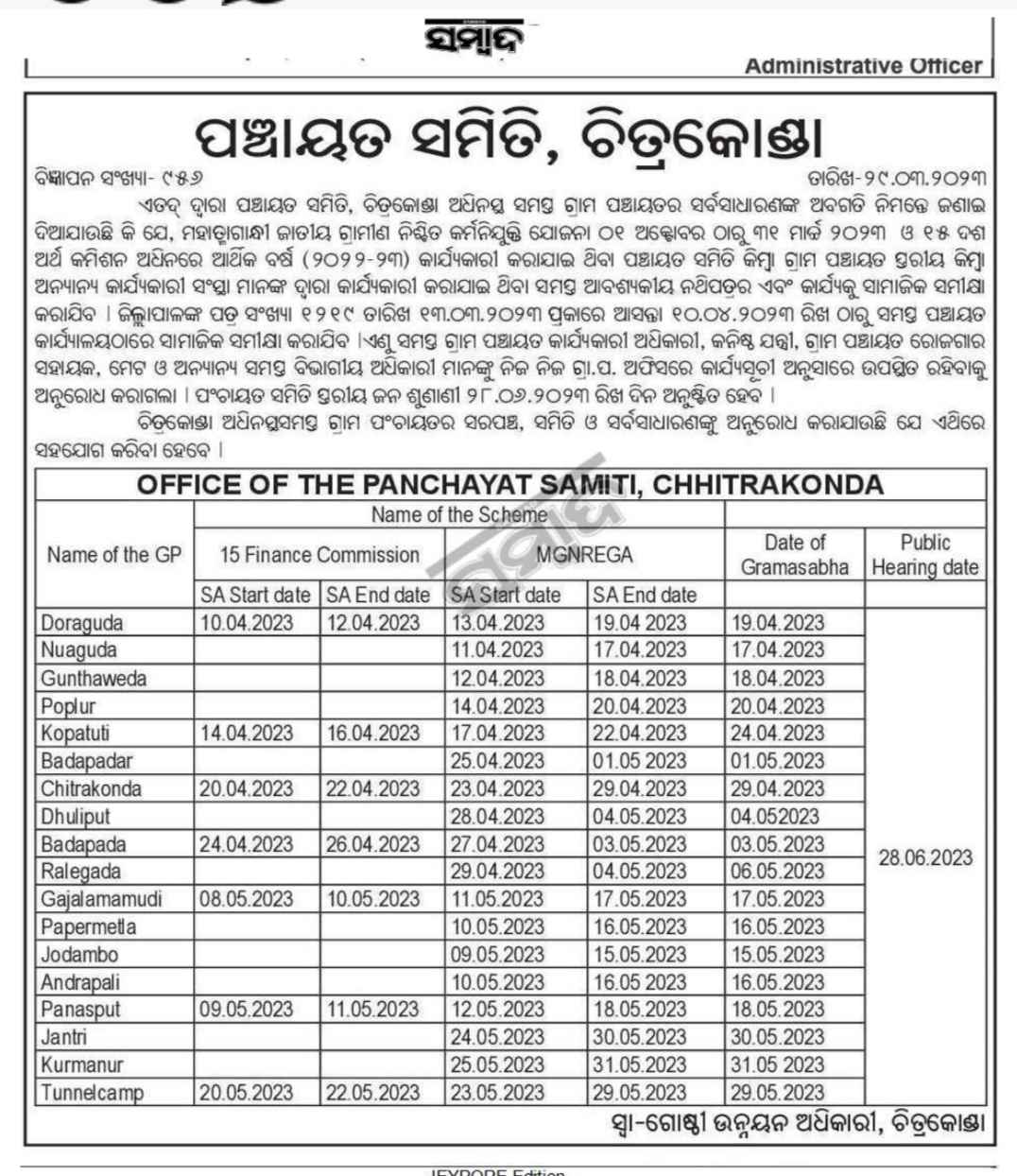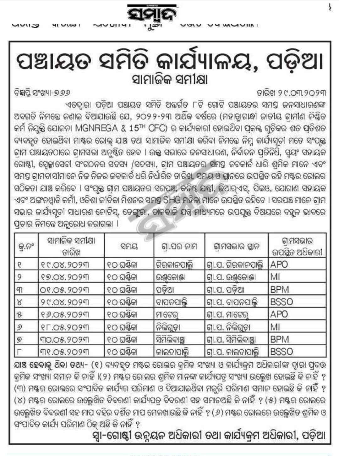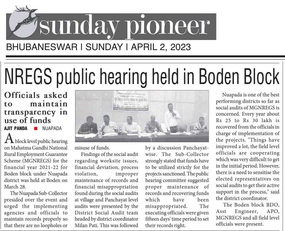 NREGS Public hearing held in Boden,Block
